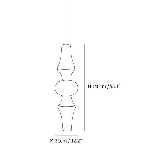 Size: Dia 31cm x H 140cm / ∅ 12.2″ x H 55.1″ (E27 Bulbs: 3 pieces)