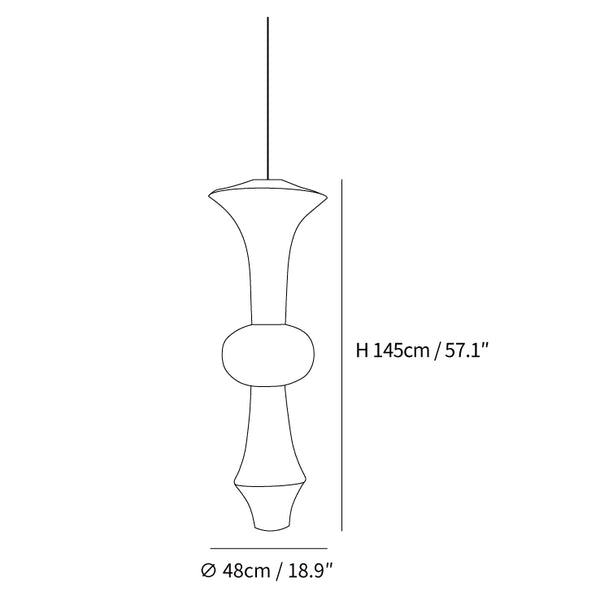 Size: Dia 48cm x H 270cm / ∅ 18.9″ x H 106.3″ (E27 Bulbs: 5 pieces)