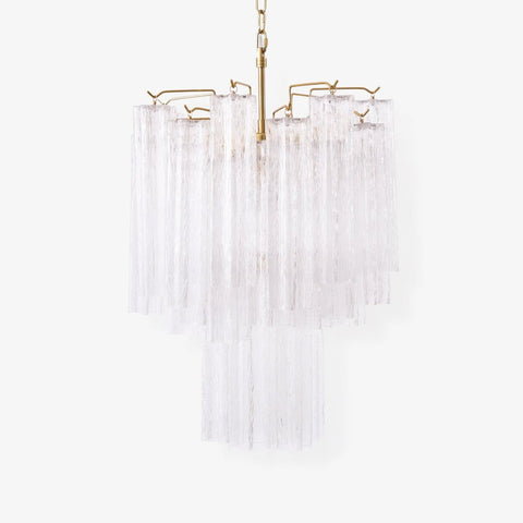 Inspired by the elegance of ballet and the timeless beauty of Murano glass craftsmanship. the Giselle Murano Glass Chandelier brings a touch of ethereal charm to any space. Featuring cascading hand-blown glass elements that mimic delicate fabric drapes. this chandelier radiates soft. ambient light. creating a warm and inviting atmosphere. The golden chain and fixture add a refined vintage touch. making it a perfect statement piece for luxury interiors. dining rooms. or boutique hotels.